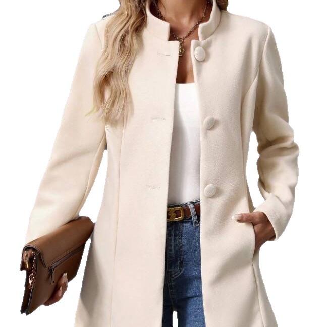 Chic Women’s Long Wool Coat with High Neck for Casual Wear