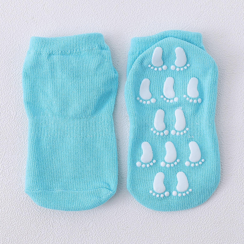 Soft-soled, non-slip flooring, perforated shoes and socks