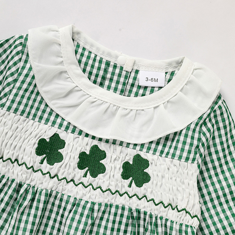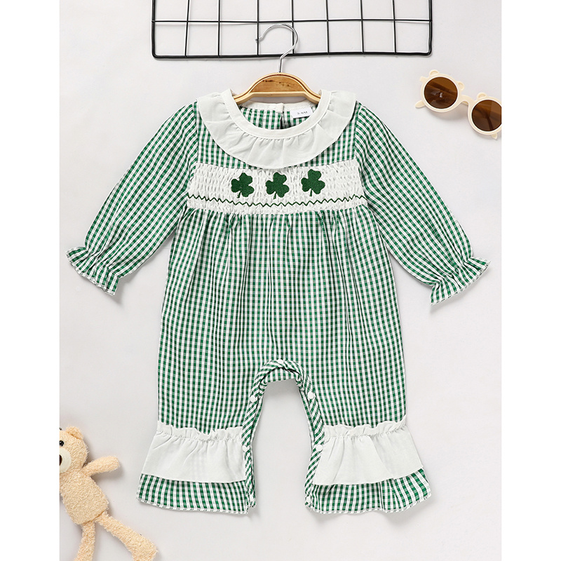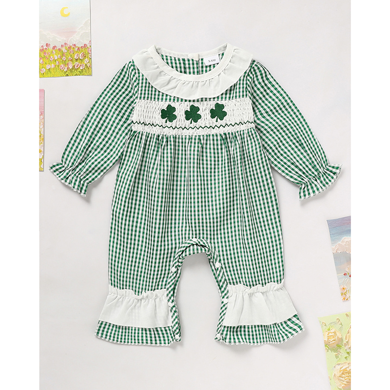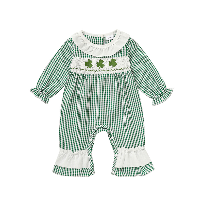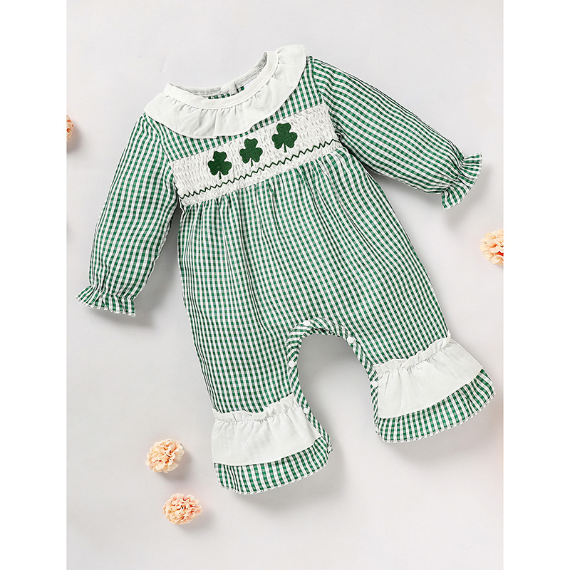 Newborn Baby Girl’s Plaid One-Piece – Lucky Clover Print Bodysuit
