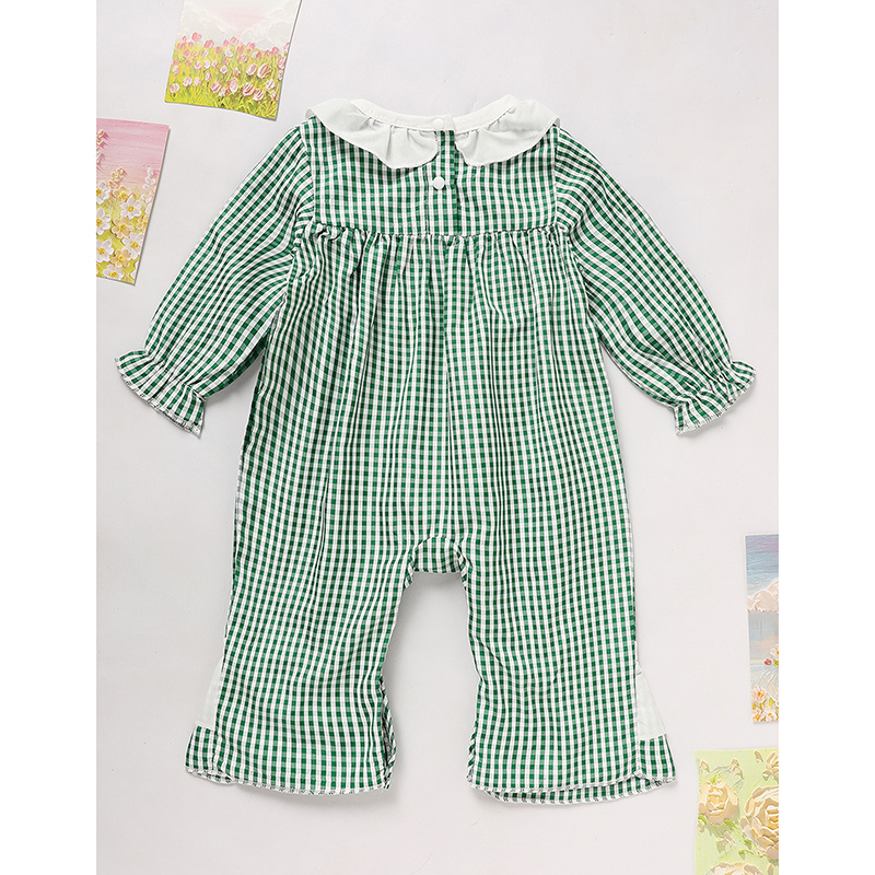 Green checkered jumpsuit with clover print