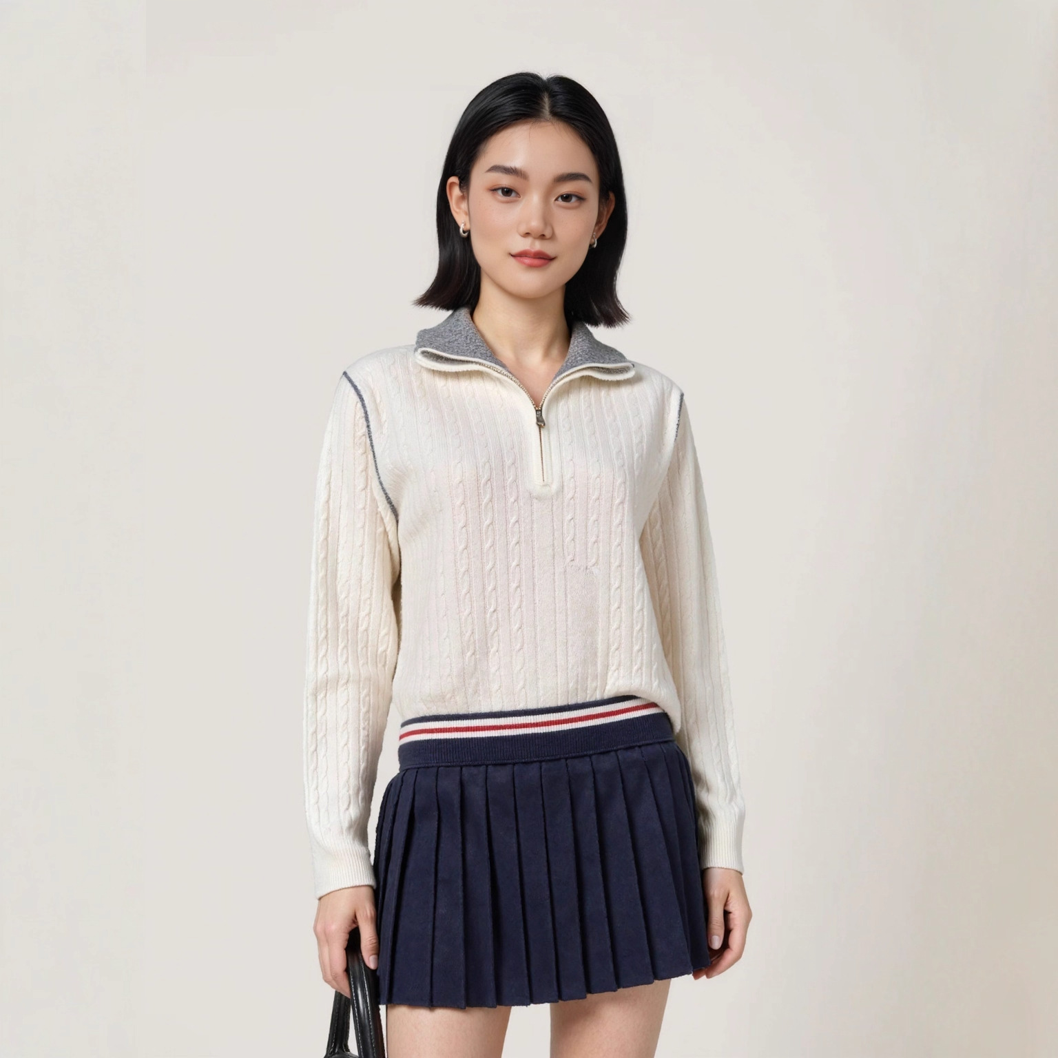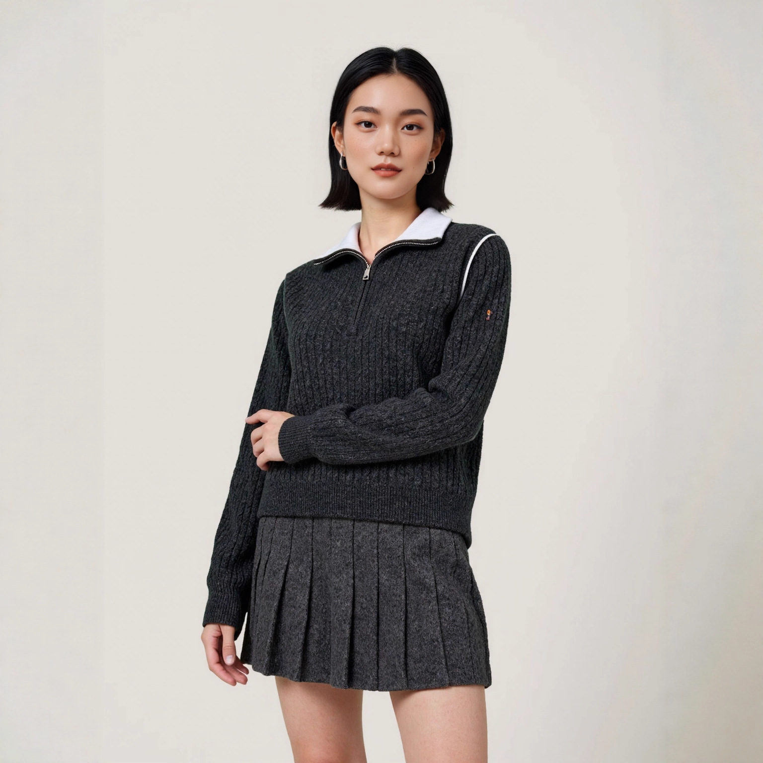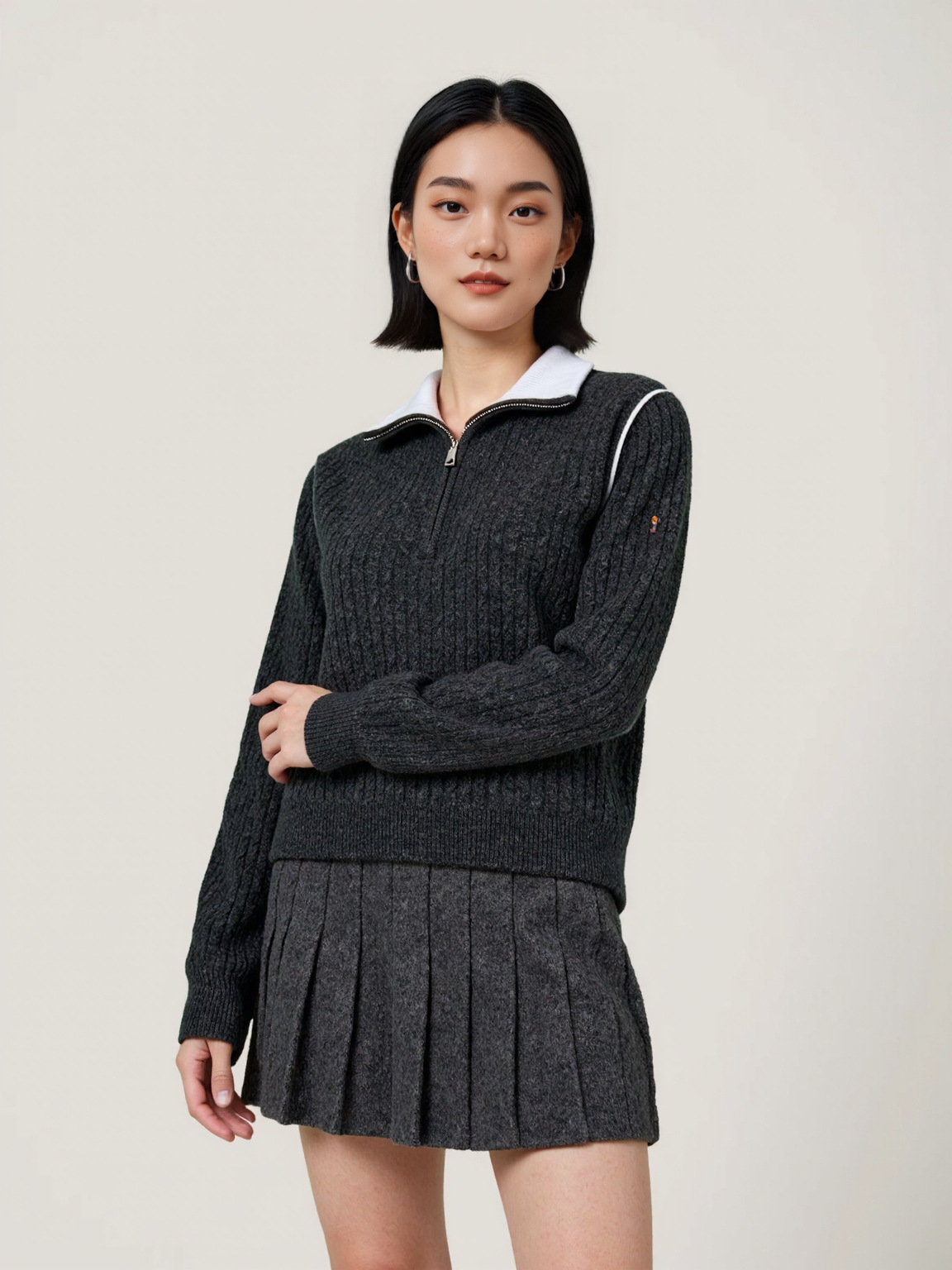 Be the first to review “Half-Zip Turn-Down Collar Wool Sweater Women Cable Knit Wool Sweater Lazy Style Knitted Top” Cancel reply