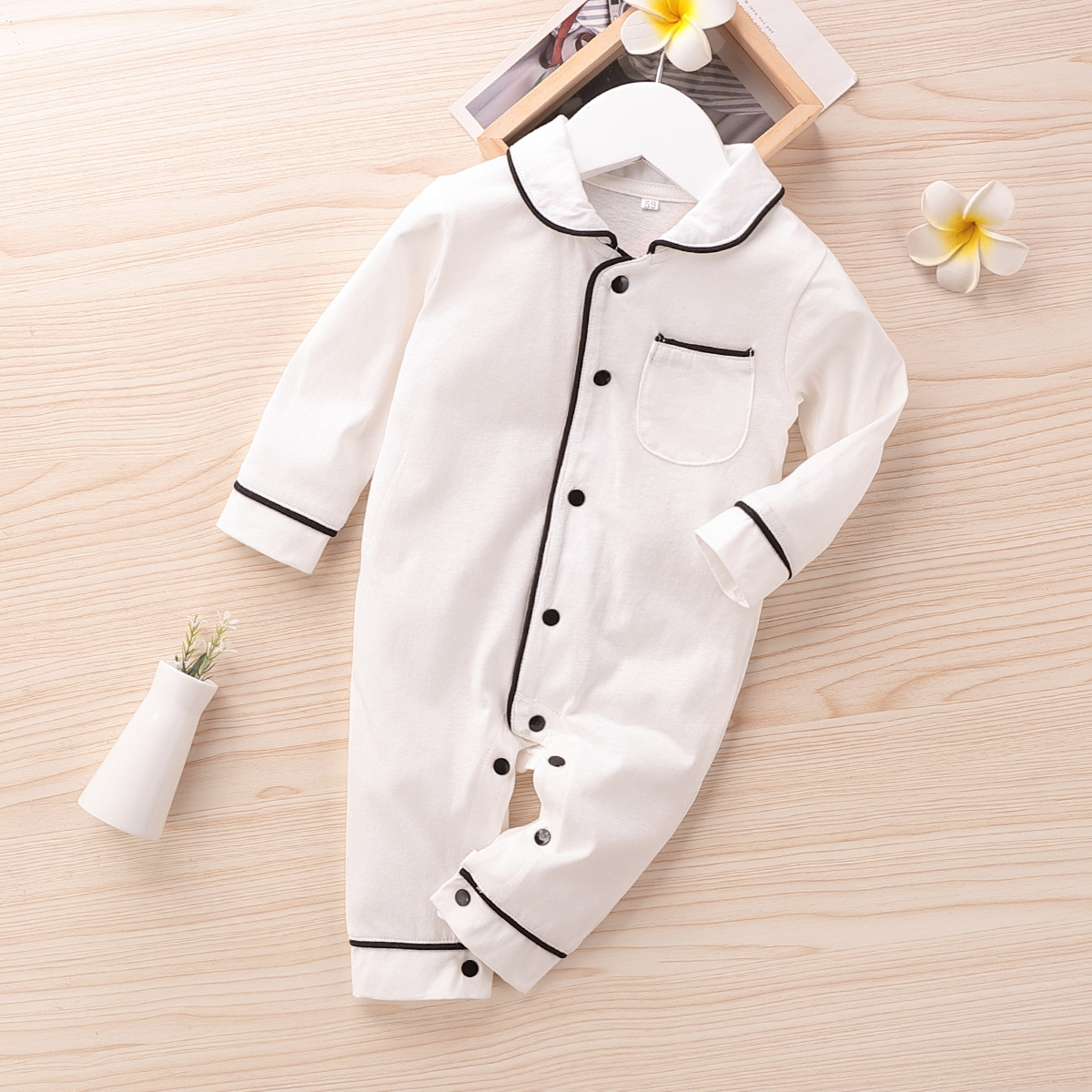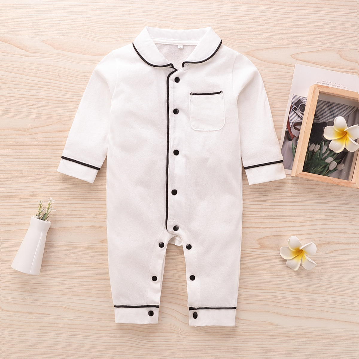 Solid color baby button-up romper