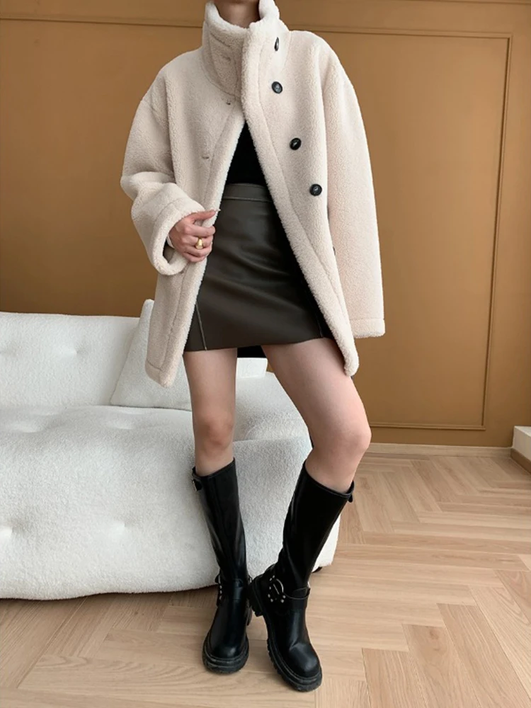 Be the first to review “Temperament stand collar imitation lamb wool silhouette jacket” Cancel reply