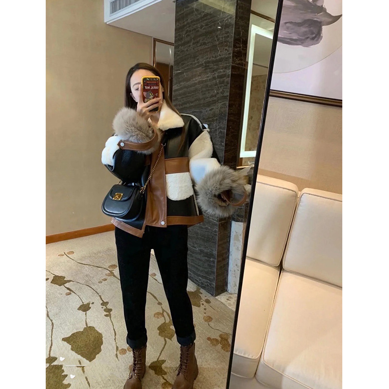 Be the first to review “Women Leather Coat Color Matching Splicing Winter Leather Jacket Women Black” Cancel reply