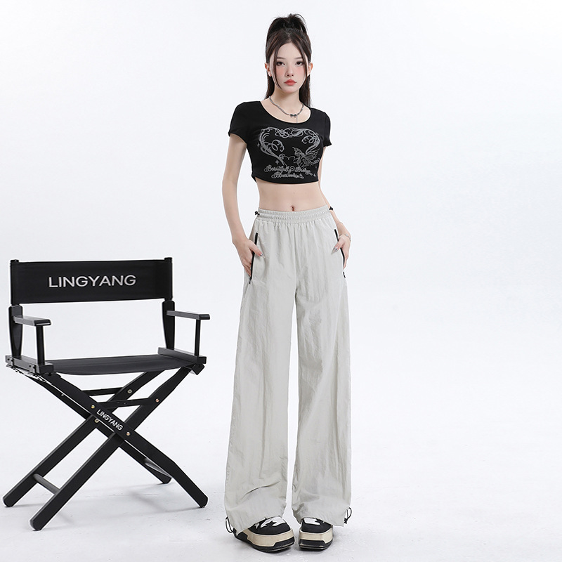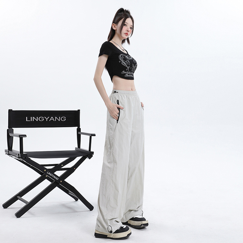 Women’s Wide-Leg Cargo Pants Summer Thin Sports Paratrooper Pants
